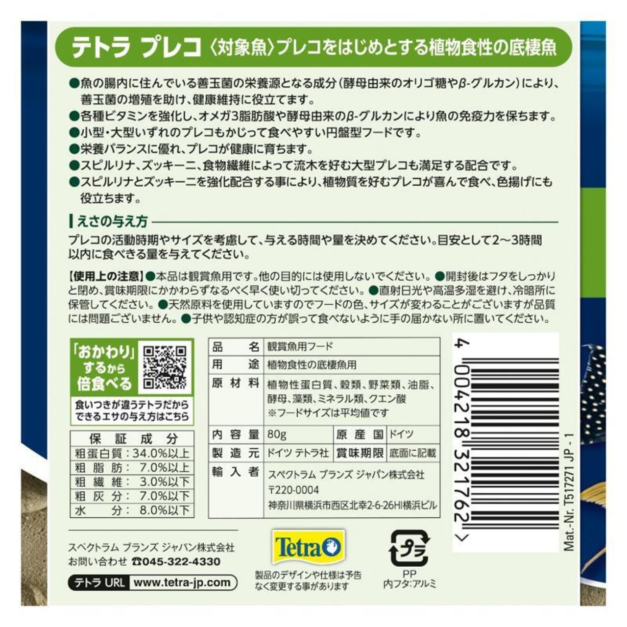 ・スピルリナ・ズッキーニを強化配合する事により、植物質を好むプレコが喜んで食べ、色揚げにも役立ちます。