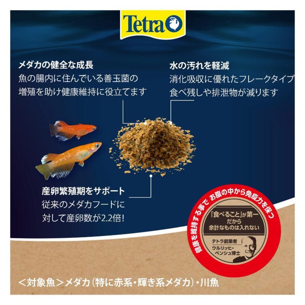 ・オメガ3脂肪酸やアミノ酸バランスに優れた良質なたん白質を豊富に含み、すべてのメダカの健康を維持することで丈夫な体を保ちます。