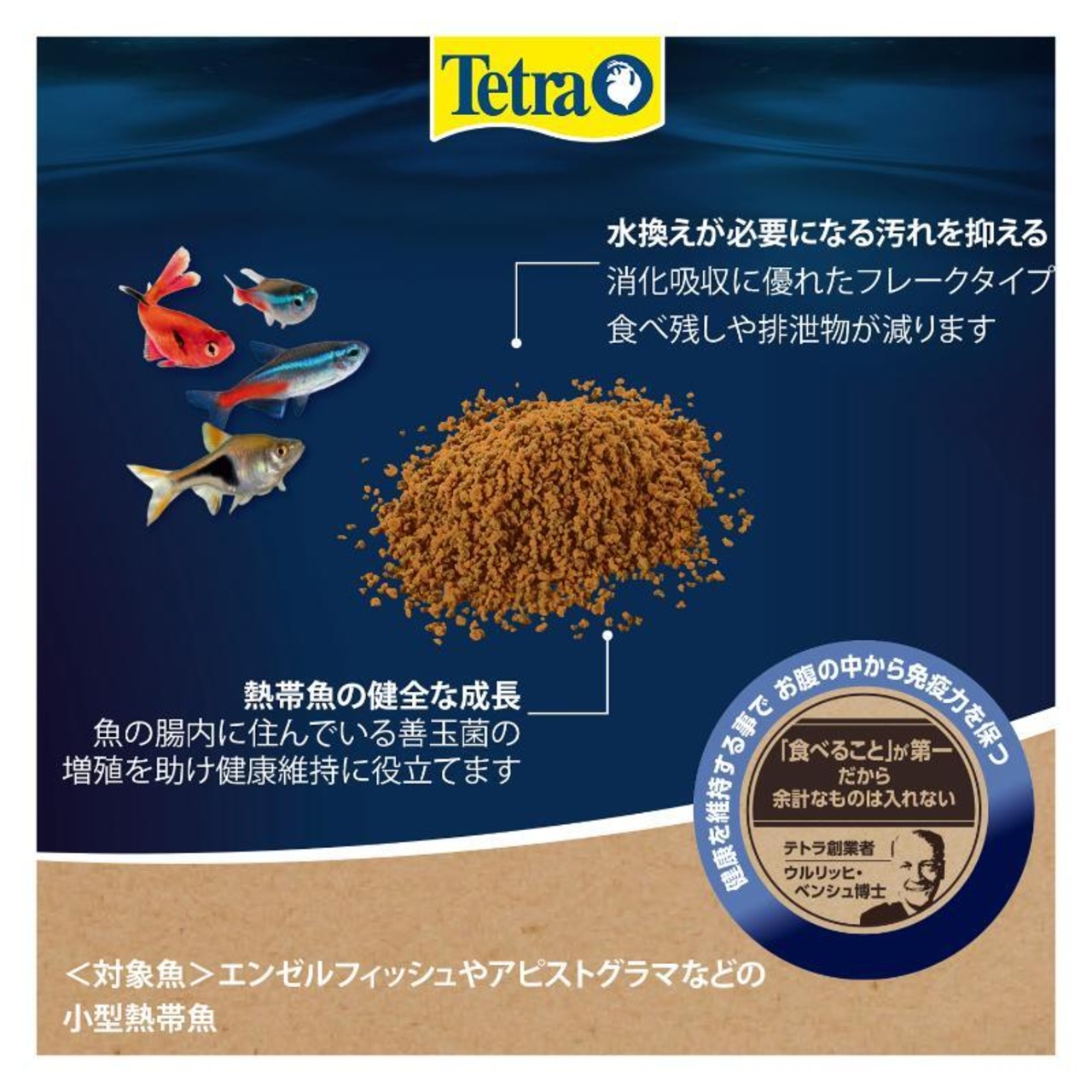 ・小型熱帯魚の美しい体色と体に必要な栄養成分をバランスよく配合しています。