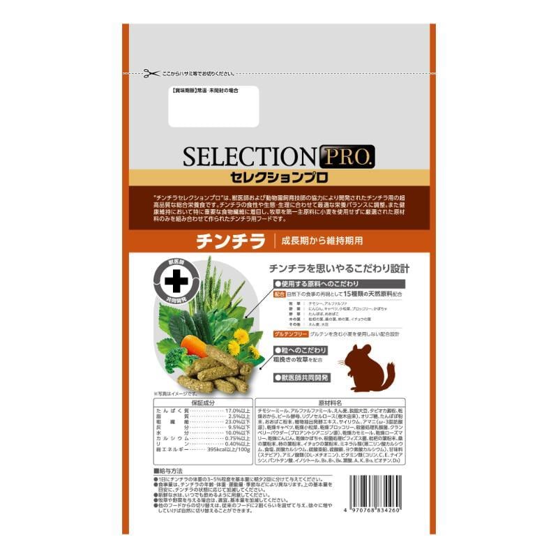 獣医師と共同開発したグルテンフリー設計のチンチラ用フード。